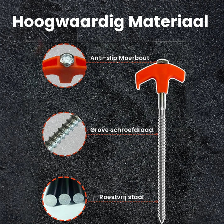 Verbeter je kampeerervaring met onze Inschroefbare Tentstaken, ontworpen voor ultieme stabiliteit en gebruiksgemak.