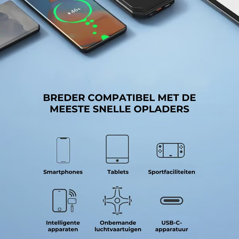Deze autoladeradapter ondersteunt snellaadtechnologie, waardoor je smartphone of tablet onderweg snel weer op kracht komt. In vergelijking met een standaard lader kun je aanzienlijk eerder weer verder rijden of bellen — ideaal voor onderweg, tijdens zakelijke ritten of een road-trip.