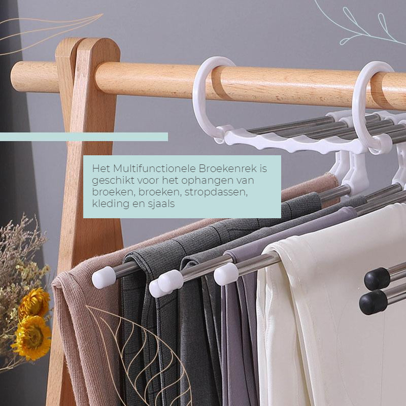 - Het multifunctionele Broekenrek is geschikt om broeken, pantalons, stropdassen, kleding en sjaals op te hangen.