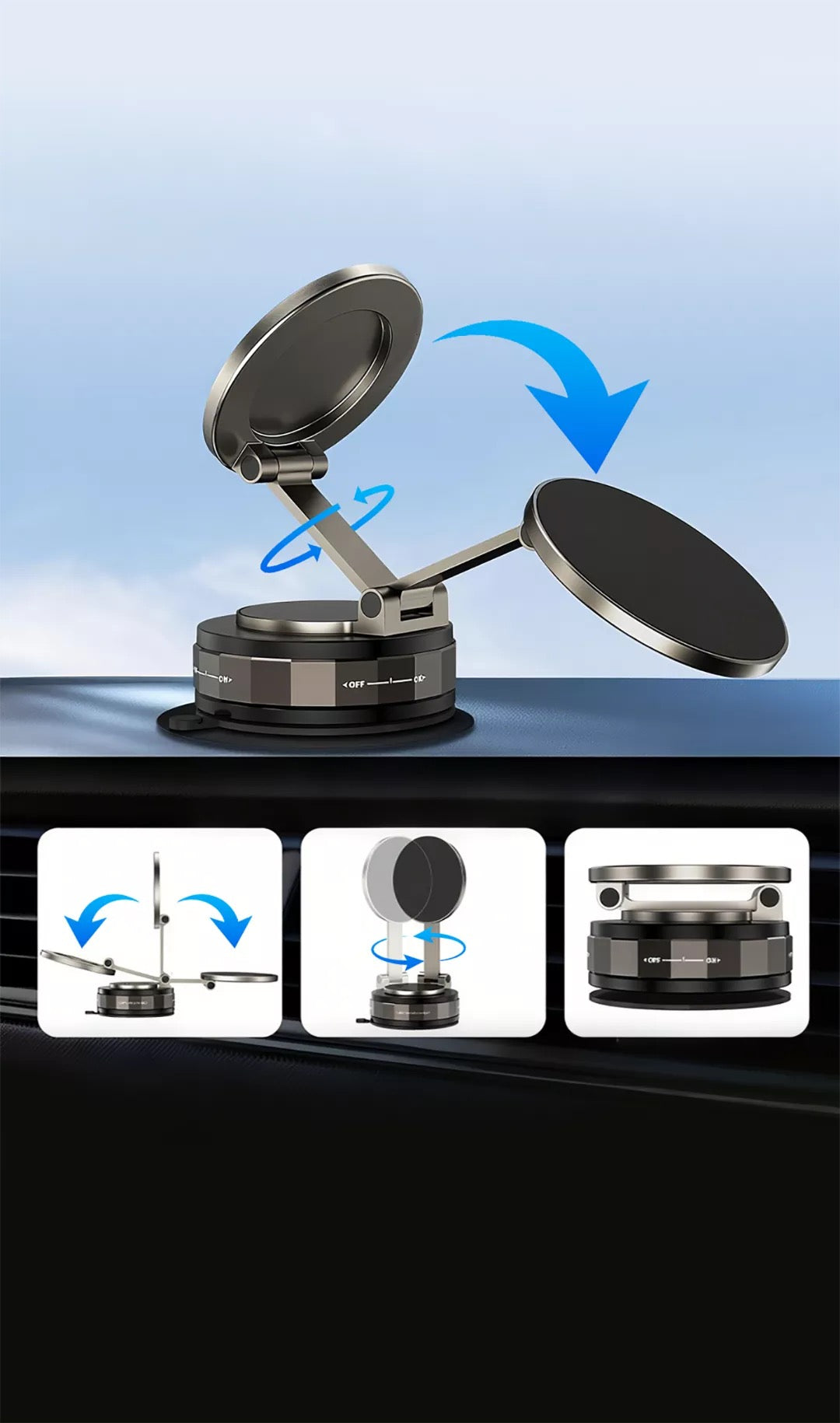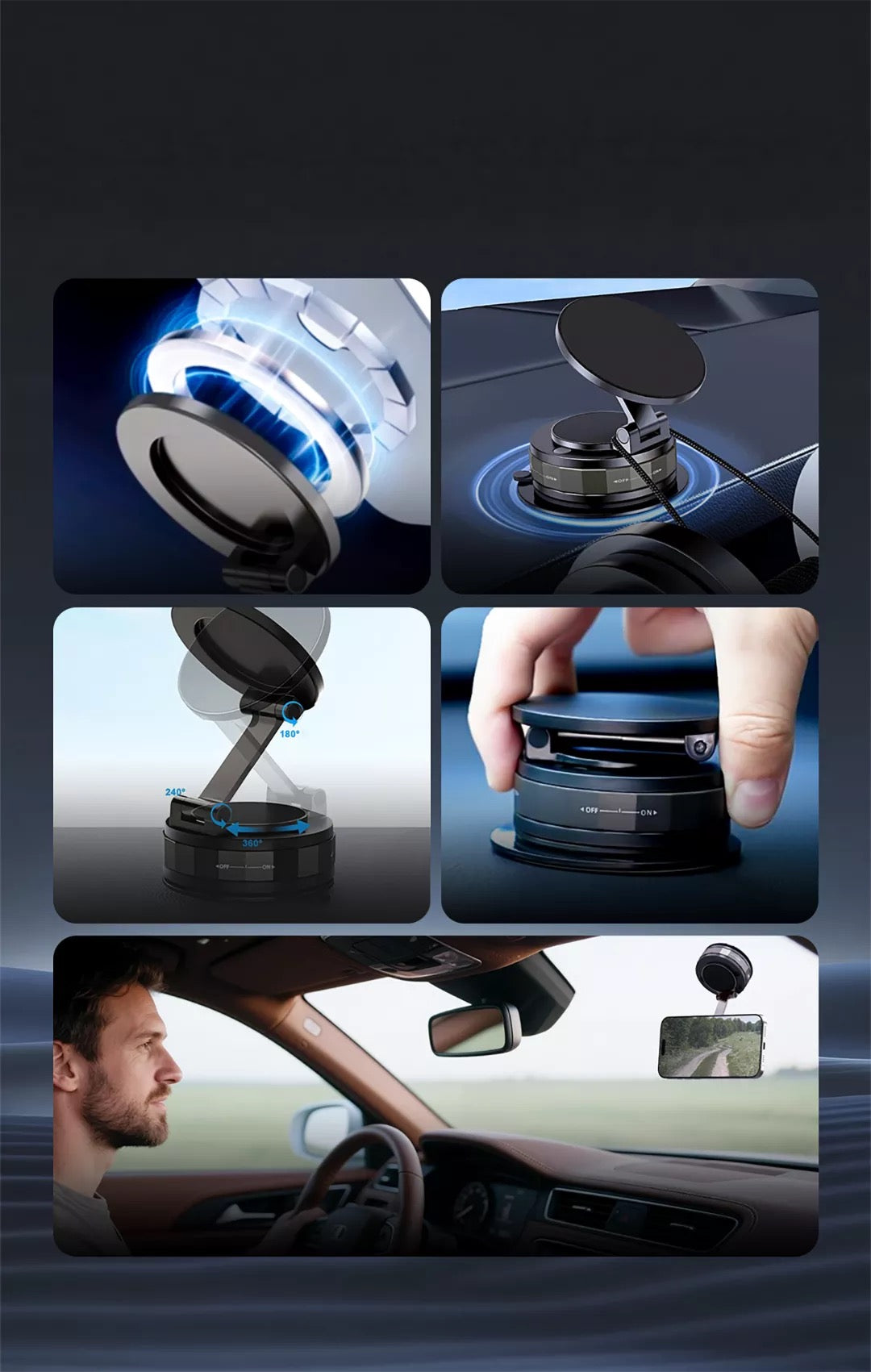 Met de Ultra Sterke Telefoonhouder ervaar je eindelijk veiligheid en zekerheid onderweg. Dankzij de krachtige N52 magneten , de 360° draaibare bevestiging en de nano-vacuüm zuignap blijft je telefoon stevig op zijn plek – zelfs op hobbelige wegen of bij krachtig remmen. Perfect voor wie zonder zorgen wil navigeren .